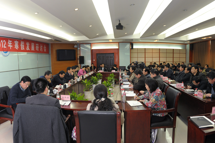 2月9日至10日,“2012年寒假学校发展研讨会”在明德楼一楼会议室召开。校党政领导王少安、邹友峰、张国臣、周志远、周英、卫中玲、张战营、王裕清、张锟、景国勋、杨建堂、丁安民出席会议,校党委委员、纪委委员,学校主要职能部门负责人,各学院党委书记、院长,国家、省(部)级平台常务(专职)副主任80余人参加会议。研讨会由校党委书记王少安主持。