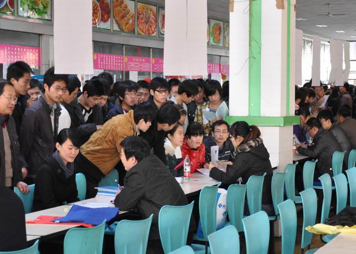 11月19日上午,我校2012届毕业生双向选择洽谈会在南校区学府餐厅、学士餐厅和招聘大厅隆重举行。此次毕业生双向选择洽谈会共吸引全国各地312家企事业单位组团参会。洽谈会现场,人潮涌动、盛况空前。