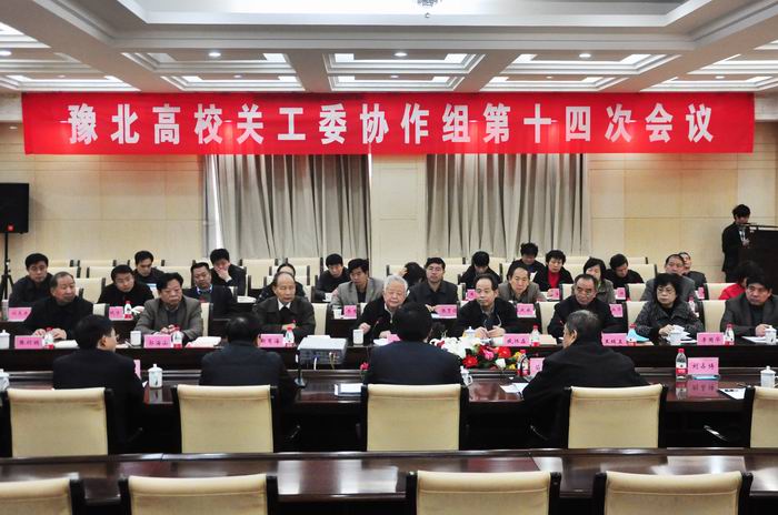 11月11日上午,豫北高校关工委协作组第十四次工作会议在我校力行楼一楼会议室开幕。河南省教育厅原厅长、关工委主任王日新、焦作市关工委副主任靳有海、豫北高校关工委协作组组长王瑞五以及我校校长邹友峰、校党委副书记兼纪委书记、关工委主任张国臣、关工委副主任苗建勃出席会议,河南师范大学、河南警察学院、安阳师范学院等13所豫北高校关工委协作组成员单位的有关负责同志参加了会议。会议由张国臣同志主持。
