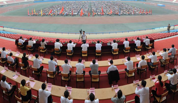 9月3日上午,我校2011级新生开学典礼在新体育场隆重举行。校党委书记王少安,校长邹友峰,校党委副书记兼纪委书记张国臣,校党委副书记周志远,副校长周英、卫中玲、王裕清、张锟、景国勋,校工会主席杨建堂,校长助理丁安民出席开学典礼,各学院及有关职能部门负责同志、全体新生和各学院辅导员参加开学典礼。开学典礼由校党委副书记周志远主持。