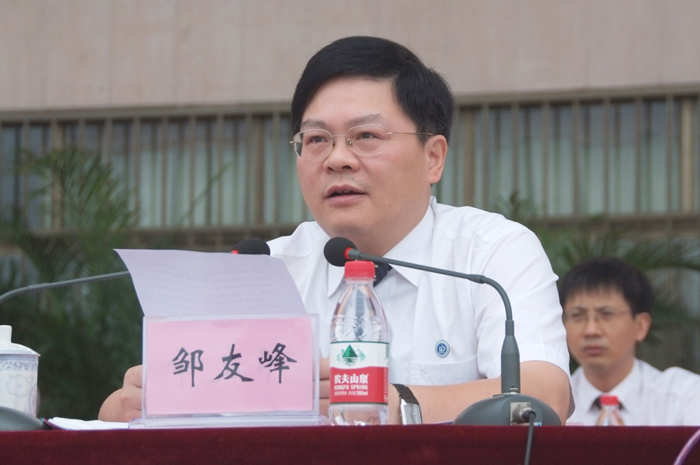 校长邹友峰在开学典礼上发表了热情洋溢的讲话。他首先代表学校对来自全国30个省(市、自治区)的8700名新同学表示热烈的欢迎和诚挚的祝贺。在简单介绍了学校的办学历史和发展现状后,邹友峰就大学的学习和生活对新生提出了殷切希望:一是希望同学们树立崇高理想,早日做好自己的人生规划,结合自身特点和所学专业,脚踏实地,把自己的前途命运与中华民族的伟大复兴紧密结合起来,不断从国家富强和民族振兴的巨大进步中汲取前进的力量。二是希望同学们增强自我管理能力,尽快适应大学学习环境,充分利用学校的各种资源,广泛涉猎,深化对所学知识的理解,为自己未来发展打下坚实的理论基础。三是希望同学们勇于实践,努力成长为适应时代要求的创新型人才,重视实习、实验,提高动手能力,增强创新意识,努力成长为国家发展、社会进步所需要的高素质复合型创新人才。四是希望同学们健康成长,做一个道德情操高尚的人,学会与人相处、与人合作,保持乐观向上的心态,锻炼身体,强健体魄,养成健康文明的生活习惯。邹友峰最后希望同学们珍惜大好时光,明确责任与使命,牢记家长、亲友和人民的重托,刻苦学习,努力进取,用知识与毅力、热情与汗水,谱写青春的美好乐章。