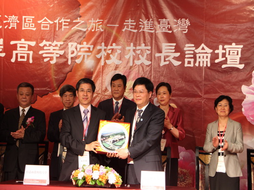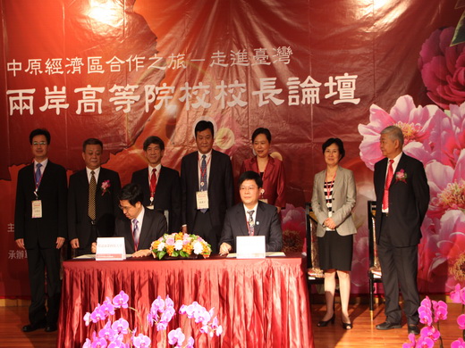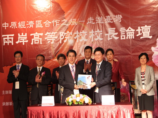 17日下午,两岸高等院校校长论坛在台湾科技大学举行,河南省副省长赵建才、省教育厅厅长王艳玲、省文化厅厅长杨丽萍、中华两岸高等及职业教育交流合作协会理事长陈希舜,以及河南18所、台湾21所高校的校长(书记)出席了论坛。论坛安排两位河南、两位台湾高校校长进行主题演讲。邹友峰演讲的题目是《坚持煤炭行业特色,推动高水平多科性大学建设》,受到了热烈欢迎。演讲前,邹友峰代表我校与台湾育达商业科技大学签署合作交流协议书,赵建才副省长、王艳玲厅长等省、厅领导及台湾嘉宾亲临主席台,见证这一历史时刻。