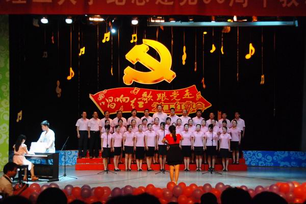 传红歌于神州大地,颂党恩在你我心间。为隆重纪念中国共产党成立90周年,歌颂党的丰功伟绩,唱响共产党好、社会主义好、改革开放好、伟大祖国好的时代主旋律,6月25日、26日晚,由校团委主办的“唱响红歌跟党走”教工红歌会在我校小礼堂成功举办。各学院、机关党委、图书馆支部、后勤集团支部、机械厂支部等参加了红歌会。