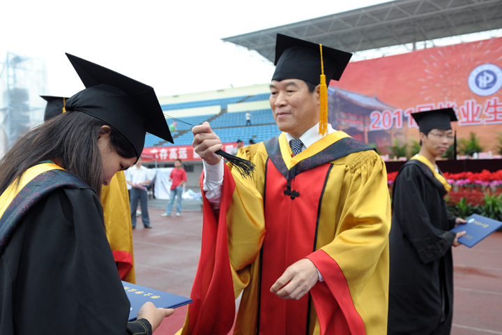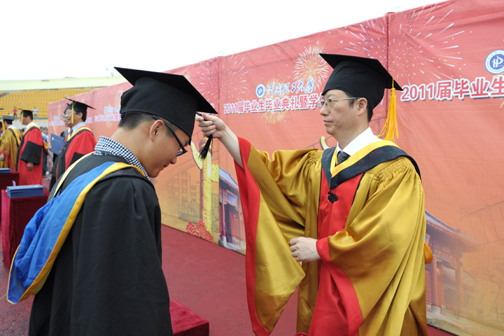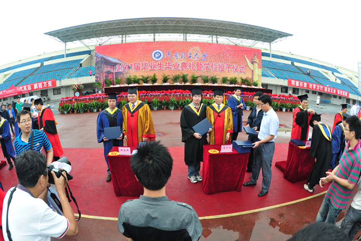6月25日上午,学校在南校区东区体育场隆重举行2011届毕业生毕业典礼暨学位授予仪式。校党政领导王少安、邹友峰、张国臣、周志远、张战营、王裕清、张锟、景国勋、杨建堂、丁安民出席毕业典礼暨学位授予仪式。学校相关职能部门负责人、各学院院长(党委书记)和全校2011届毕业研究生、本科生、专科生及紧缺人才班7000余名毕业生参加毕业典礼暨学位授予仪式。毕业典礼暨学位授予仪式由校党委副书记周志远主持。