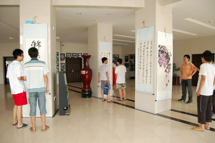 在纪念中国共产党建党90周年之际,为讴歌中国共产党成立90年来的丰功伟绩,近日离退休工作处在我校二号综合楼大厅举办了“庆祝建党九十周年离退休职工书画、摄影展”。
