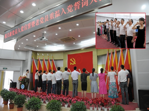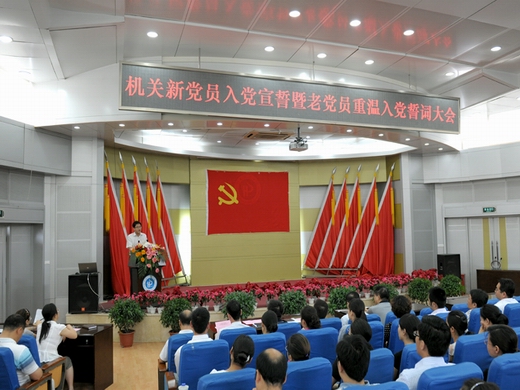 6月21日下午,在中国共产党建党90周年来临之际,机关党委在学术报告厅召开机关新党员入党宣誓暨老党员重温入党誓词大会,回顾党的光荣历史,共庆党的光辉节日。机关全体党员200余人参加大会,大会由机关党委副书记兼机关纪委书记杨波主持。