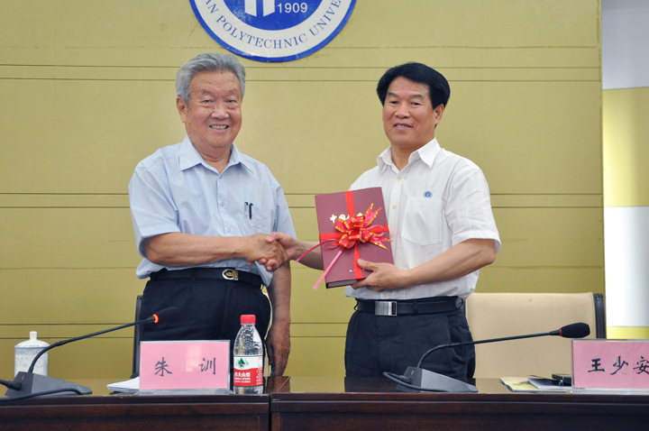 校党委书记王少安在讲话中代表学校对朱训校长表示衷心的感谢和崇高的敬意。王少安动情地说,朱训先生的收入是退休工资,却毅然从自己的积蓄中出资在我校设立“朱训教育奖励基金”,这种对高等教育事业、特别是河南理工大学的强烈责任和特殊情怀,已成为广大师生自强不息、勇于创新的强大精神动力。朱训先生自2006年出任学校名誉校长以来,一直十分关心和鼎力支持学校的建设与发展,多次亲临学校指导工作,竭尽全力为学校百年校庆和省局共建提供支持,为学校发展事业倾注了大量心血。王少安希望广大教师要牢记胡锦涛总书记“关爱学生、严谨笃学、淡泊名利、自尊自律”的殷切教诲,以教书育人为天职,注重言传身教,努力培养德智体美全面发展的社会主义事业合格建设者和可靠接班人;希望广大青年学生要牢记胡锦涛总书记“把文化知识学习和思想品德修养、创新思维和社会实践、全面发展和个性发展紧密结合起来”的殷切希望,充分利用学校优越的学习条件,丰富综合素养、提高专业技能、增强创新能力,努力成为可堪大用、能负重任的栋梁之材,以优异的成绩回报朱训校长对全校师生的深情厚爱。