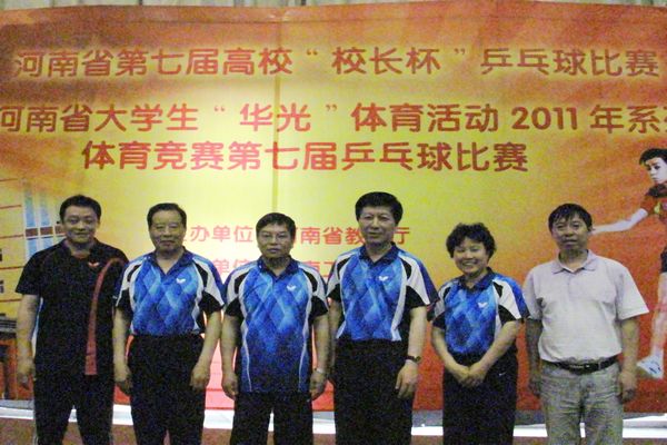 为落实上级部门关于积极参与体育运动的相关文件精神,增强与兄弟高校的沟通与联系,日前,学校组建了以校长邹友峰,校党委副书记周志远,副校长卫中玲、张战营、王裕清,工会主席杨建堂为运动员,体育学院院长马明、副院长杨军为领队,陆琦老师为教练的代表队,分别参加了河南省第七届和煤炭系统首届高校“校长杯”乒乓球比赛,并取得了优异成绩。