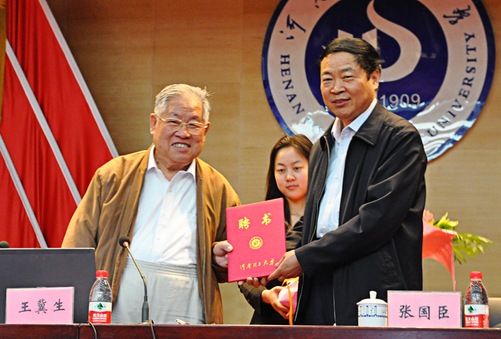 校党委副书记兼纪委书记张国臣为王冀生颁发聘书