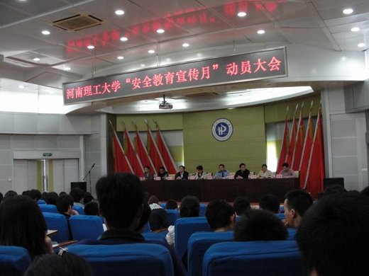 动员会伊始,许荣梅宣读了由校长办公室下发的《河南理工大学关于在全校开展大学生“安全教育宣传月”活动的通知》。接着,安全协会学生代表宣读了“关注安全,关注生命,加强自我管理”的安全倡议书,倡议我校师生做到“时时讲安全、事事讲安全”。随后,卫中玲着重就目前存在的食品安全和校园安全问题发表了讲话,她希望广大师生牢固树立安全意识,为自己、为家庭、为学校负责,度过自己美好的大学时光。最后,孙海军结合切身经历为大家讲述了有关“校园安全防范”的知识,并对广大师生提出了切实可行的意见建议。