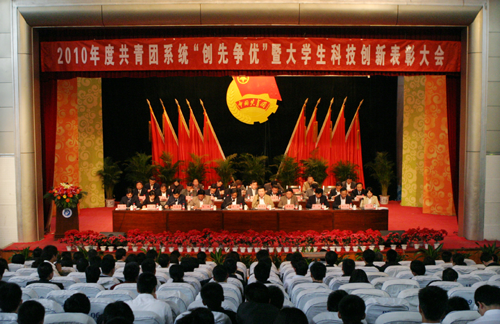 4月19日下午,我校2010年度共青团系统“创先争优”暨大学生科技创新表彰大会在我校南校区小礼堂隆重召开。校党政领导周志远、周英、张战营、张锟,各学院、相关职能部门负责人及七百余名团员青年代表参加了会议。表彰大会由校团委副书记陈昊主持。