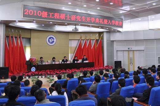 在开学典礼仪式上,副校长景国勋发表了热情洋溢的讲话。他首先代表学校对2010级248名工程硕士研究生的到来表示衷心的祝贺和热烈的欢迎。接着,景国勋简要介绍了学校的百年校史、办学优势、学科建设、师资力量和科研发展情况,并以杰出校友为实例,重点介绍了我校工程硕士研究生教育的发展和取得的成绩。最后景国勋向全体新生提出了五点希望:一是珍惜学习机会,明确学习任务;二是妥善处理好学习和工作的关系,努力将理论与实践融会贯通;三是重视培养环节,恪守学术道德,按期完成学业;四是注重强化能力,提升质量;五是遵守纪律,规范管理,切实完成“三个转变”,即在职工作人员到学员的转变,由家庭生活到集体生活的转变,由以工作为主到以学习为主的角色转变。