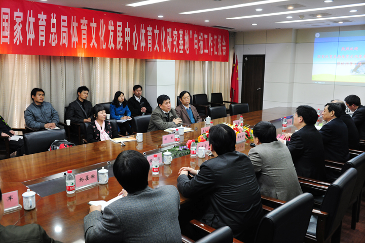 听完汇报后,国家体育总局体育文化发展中心副主任覃燕庆对我校的建设发展给予了高度评价,对我校体育文化研究基地的申报和体育文化研究予以肯定。他指出,目前我国正致力于从体育大国到体育强国的转变,要想成为体育强国,其中很重要的指标就是对体育文化的认知度,因此加强体育文化的研究非常有必要。他表示,体育文化研究在建设体育强国和构建和谐社会的进程中具有重要意义,希望我校一如既往地继续重视、支持和扶植体育文化研究,为我国体育文化建设、体育事业的繁荣与发展做出新贡献。