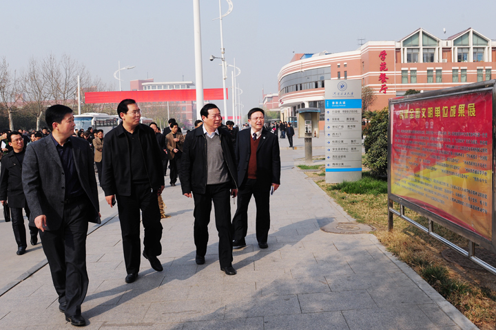 考察团一行参观了明德广场东侧的全校精神文明建设成果展、明德广场南侧的基层单位精神文明成果展、学生宿舍区阅报栏和校史馆,对我校的精神文明创建工作特别是精神文明建设氛围营造给予充分肯定和高度评价。王保杰对我校精神文明建设提出了要求,他希望我校再接再厉,扎实工作,深入开展以“五创两争”为内容的群众性精神文明活动,进一步提升精神文明建设水平,为创建全国文明单位奠定坚实基础。