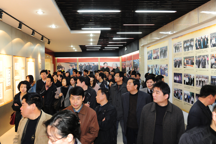 校党委副书记兼纪委书记张国臣陪同考察团观看宣传展板