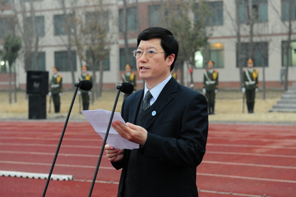 副校长景国勋发表了热情洋溢的讲话。首先,景国勋代表学校向全校师生表达了亲切问候和美好祝愿,总结了过去一年学校各项事业取得的新成绩,同时给同学们提出了三点希望和要求:第一,树立理想,不辱使命。当前我国正在加快全面建设小康社会,“十二五”规划纲要的制定将进一步推进我国现代化进程。作为有志的青年一代,同学们要将个人的前途与国家的发展紧密结合,牢记责任与使命,不忘家长、学校和人民的重托,把为国家、为民族做贡献作为奋斗方向,坚持理论学习和社会实践的统一,使自己成为社会主义事业合格建设者和可靠接班人。第二,珍惜时光,勤奋学习。全国教育工作会议的召开和《国家中长期教育改革与发展规划纲要》的颁布,标志着高等教育进入新的发展时期。学校不断完善的基础设施和浓厚的教学科研氛围为同学们提供了优越的学习环境,同学们要珍惜宝贵时光,刻苦学习,勤于思考、勇于探索,坚持文化知识学习和思想品德修养的统一,用知识和能力成就美好的未来,努力使自己成为国家建设的栋梁之材。第三,强健体魄,全面发展。身体是我们从事学习、工作的基础,同学们一定要秉承“每天锻炼一小时、健康工作五十年、幸福生活一辈子”的生活理念,积极参加各项体育锻炼,坚持早操早读;做到体魄强健、意志坚强、朝气蓬勃、充满活力;坚持全面发展和个性发展的统一,使自己成为德、智、体、美全面发展的优秀青年。最后,景国勋号召全体师生在“十二五”开局之年,振奋精神,求真务实,为加快我校高水平教学研究型大学建设步伐,早日实现校第一次党代会提出的宏伟目标而努力奋斗。