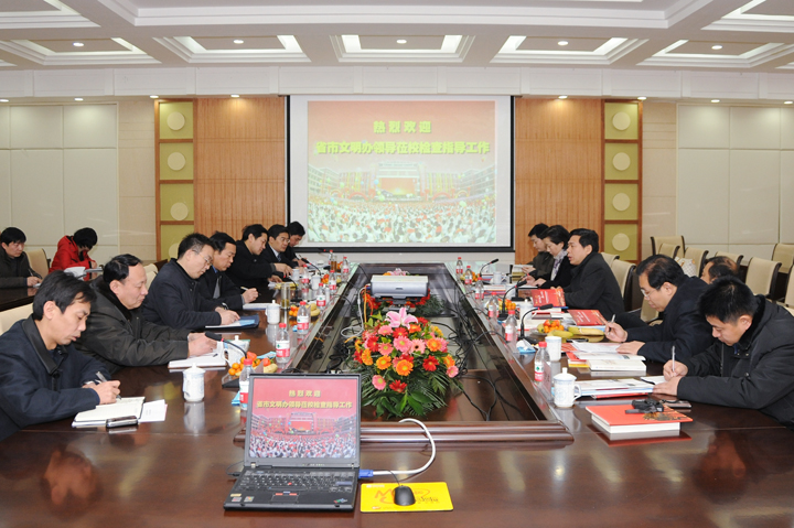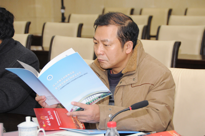 张国臣作题为《深入开展五创两争活动,着力提升精神文明建设水平》的主题汇报。汇报从四个方面全面介绍了我校精神文明创建工作:一是注重把握整体,以科学的发展理念引领文明单位创建;二是注重风气引导,以良好的校园风尚促进文明单位创建;三是注重全员参与,以师生的主体地位推动文明单位创建;四是注重环境营造,以浓厚的文化氛围强化文明单位创建。张国臣指出,精神文明创建活动的深入开展,有力地促进了学校各项事业又好又快发展。一年来,学校内涵建设取得实质性进展,人才培养质量稳步提高,学科结构不断优化,师资队伍实力全面提升,科技创新能力显著增强,内部体制机制逐步健全,文化建设特色更加鲜明,办学层次、水平和实力实现新跨越,学校事业发展已经站在一个新的起点。张国臣指出,希望省、市文明办和与会单位一如既往地关心和支持学校发展,对我校精神文明创建工作提出宝贵意见和建议,促进我校精神文明创建工作再上新台阶。