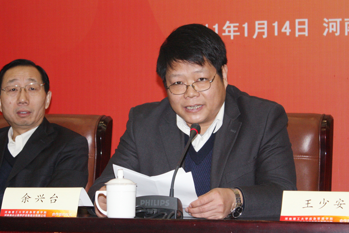 省应急办主任余兴台在讲话中表示,河南理工大学在全国应急管理领域具有领先地位,这次与河南高远公司的合作,对于我省乃至全国的应急管理人才培养、技术研发、产业发展都具有积极而深远的意义。新乡市副秘书长唐俊生、我校副校长景国勋、河南高远路业集团董事长刘廷国分别在讲话中表示要加强合作,实现共赢。