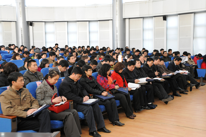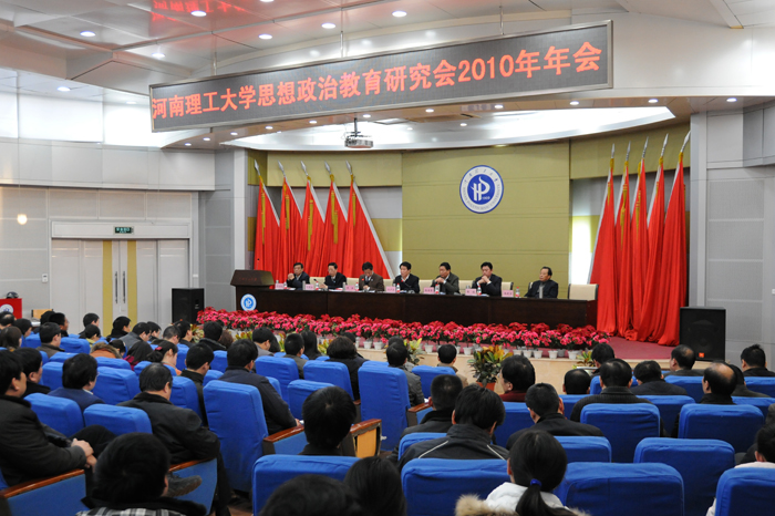 12月28日下午,学校思想政治教育研究会2010年年会在力行楼学术报告厅隆重召开。校党政领导王少安、张国臣、周英、张锟、景国勋、杨建堂、丁安民出席会议,全校处级党政干部,特聘组织员,机关党务部门全体人员、思想政治理论课教师,专职团干部和辅导员、班主任代表等近300人参加会议。会议由副校长周英主持。