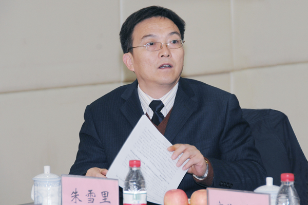 校文明办副主任、党委宣传部部长朱雪里作工作汇报