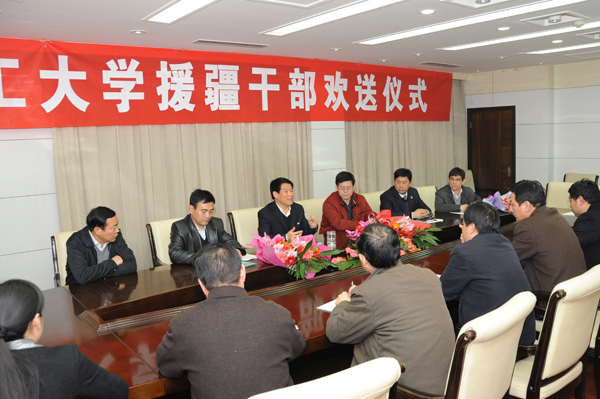 会上,校党委书记王少安首先向各位援疆的同志历经层层选拔、脱颖而出表示祝贺,并指出,对口援疆工作责任重大,使命光荣。学校会认真落实援疆干部和教师的各项政策待遇,积极为援疆干部和教师提供支持和帮助。三位同志所在单位要建立专人联系制度,由专人负责与三位援疆同志家属的联系,及时帮助他们解决工作、生活中遇到的困难。同时,王少安也对他们提出了殷切的希望与要求:一是要以维护新疆稳定和促进其发展为已任,努力工作,无私奉献,确保高质量完成各项工作任务;二是要注重在新的岗位和环境中为个人事业发展积累经验,不断促进个人素质的提升;三是要开阔视野,拓展思维,不要把眼光局限于哈密,要放眼于整个新疆,以新疆丰富的煤炭资源为纽带,努力寻找与我校在科技、教育等方面的合作平台,探索建立我校与新疆的深度合作途径和机制,以新的理念和方式进一步扎实做好援疆工作。