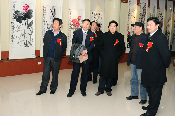 开幕式结束后,王际鑫一行共同参观了书画作品展。一幅幅山水写意,博大浑厚,朴茂劲健,散发出质朴醇厚的典雅气息,彰显出其对自然的灵性感悟;空灵流畅、行云流水的行书尽显大家风范,潇洒飘逸、苍劲有力的魏体凸显豪迈人生;作品展充分显示出王际鑫先生深厚的文化底蕴和高深的自身修养。