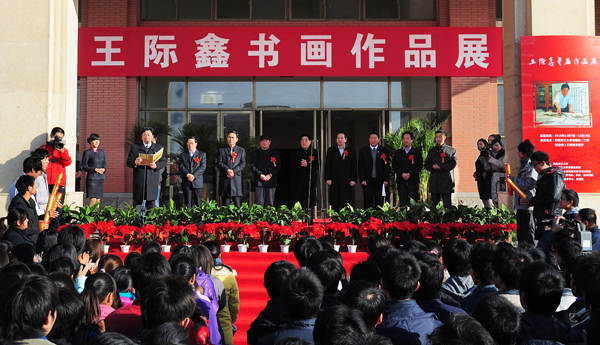 开幕式上,校党委副书记兼纪委书记张国臣致开幕辞,他代表河南理工大学全体师生向莅临书画展的领导和来宾表示诚挚的欢迎,对著名的教育家、书画家王际鑫先生表示衷心感谢并预祝作品展圆满成功。他简要介绍了王际鑫先生在教育界的地位和书画艺术方面取得的建树。他指出,王际鑫先生的作品,将人生的艺术与艺术的人生相结合,把书画作为自身修养和生命历练,作为教育和影响下一代的风范,在我国书法界赢得了广泛赞誉,为我省文化事业的大发展、大繁荣做出了积极贡献。王际鑫书画作品展成功举办,不仅有助于启发当代大学生对书画艺术的关注和热爱,激励他们传承和发扬中华书法艺术精髓,对于推进素质教育,提升校园文化水平也具有积极促进作用。