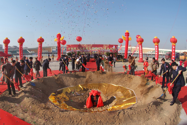 最后,各位领导和来宾共同为体育馆培土奠基。