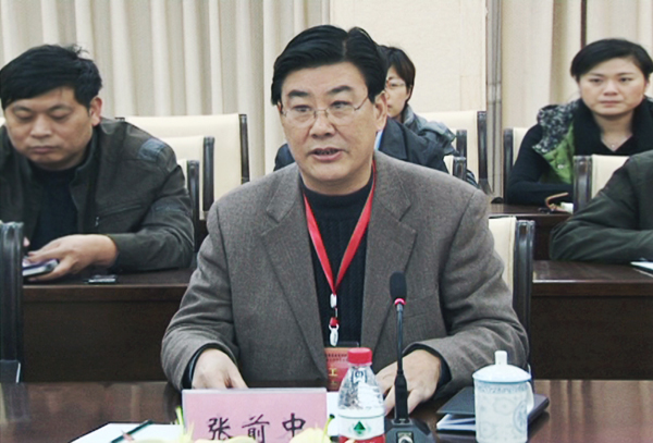 评估组组长、黄淮学院党委副书记、纪委书记张前中发表讲话