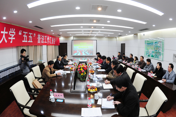 汇报会上,校党委副书记兼纪委书记张国臣代表学校作题为《加强法制宣传教育 全面提升依法治校水平》的主题汇报,报告从五个方面汇报了我校“五五普法”工作的主要做法和经验:一是加强领导,措施得力,为开展普法工作提供坚强有力的保证。党委高度重视,制定了《河南理工大学开展法制宣传教育的第五个五年规划》,并将“五五”普法工作,列入各处级单位年度目标考核,提供了坚强的组织保证;加强建章立制,制定《河南理工大学章程》和300多项规章制度,为学校各项工作有法可依、有章可循和实现民主管理、依法治校提供了有力的制度保证。二是突出重点,全面推进,切实增强法制教育的针对性和实效性。以培养高素质人才为目标,抓实课堂教学和实践教学,认真抓好大学生的法制教育;以提高办学治校能力为目标,做到个人自学与集中学习相结合、自查与督学相统一、学法与用法相结合;以全面提高治学育人水平为目标,根据不同层次确定法制教育的重点内容,根据不同内容突出法制教育的基本特点,根据不同方法体现法制教育的实际效果。三是依法治校,民主管理,深入推进学校民主政治建设进程。坚持党委领导下的校长负责制;着力推进校务公开,保证了师生员工的知情权、参与权和监督权;加强校、院两级教代会建设,使民主管理、民主监督得到有效实施;依法规范办学行为。四是拓宽渠道,丰富载体,着力增强法制教育的吸引力和感染力。以法制宣传教育月和法制宣传教育周为载体,积极开展普法教育;以创建安全文明校园为契机,积极开展安全防范;以“平安校园”建设为载体,深入开展创建安全文明校园活动;以社会实践、服务社会为主要途径,大力宣传普及法律知识;以综合治理、管理考核为手段,落实普法教育。五是注重融合,多措并举,着力加强校园法治文化建设。与校园风气建设融合,丰富法治文化内容,把加强党风、教风、学风等校园风气建设作为搞好法治文化的重要抓手,着力加强机关干部作风、教师师德师风、学生诚信意识和师生荣辱观教育;与校园文化建设融合,创新法治文化载体,在校园内布置主题雕塑、摆放文化石,组织开展法制专题活动,繁荣校园法治文化;与舆论宣传融合,推动法治文化传播,注重发挥主流媒体的导向作用、模拟法庭的互动作用、法制书刊的教育作用,着力构建覆盖全校、惠及师生的法治文化服务体系。张国臣指出,在今后工作中,我校将以中国特色社会主义理论体系为指导,进一步建立健全长效机制,在实现依法治校的科学化、制度化、规范化上下功夫;坚持和贯彻“三贴近”,在改进和创新上下功夫;深入开展法制宣传教育活动,在引导师生广泛参与上下功夫;切实加强队伍建设,在转变作风、求真务实上下功夫,全面提升依法治校水平,为全面建设小康社会、建设人力资源强国和实现中原崛起做出新的更大的贡献。