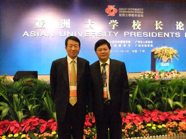 我校派出由校长邹友峰、副校长张战营、校长助理丁安民组成的代表团出席了本次论坛。会议期间,校长邹友峰一行参观了广州大学城,与参会高校进行了交流,并与韩国淑明女子大学签订了合作办学协议。