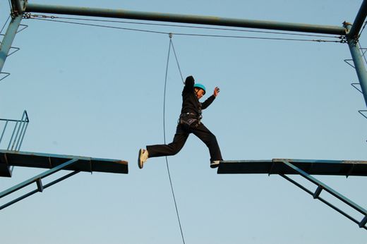 随后,在体育学院专业指导教师的带领下,24名机关科级干部依次完成了“信任背摔”、“高空断桥”两个项目的训练。在“信任背摔”活动中,每位队员站在一个1.6米的高台上直立后倒,其余10名队员组成人墙用手臂把其接住。此项活动旨在通过训练使大家明确诚信为本、信守承诺、相互信任是团队协作的基础;换位思考、相互尊重、相互体谅是团队协作的保障;各担其责、各尽其能,勇于承担责任、增强自我控制是赢得理解与支持的关键。在“高空断桥”活动中,每个人攀上6米高的“空中断桥”,经受心理考验,突破自身恐惧,两次向前迈出意义非凡的一步,然后倒仰而下。该项目旨在让参训人员明白一个人最快的成长方式就是不断地挑战自身的极限,积极乐观地面对困难,不断超越自我,才能成为享受成功的真正强者。