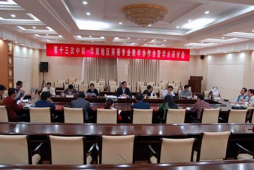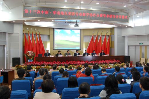 10月16日上午,由我校外国语学院承办的“第十三次中南·华南地区2010年英语专业教学协作会暨学术研讨会”在南校区圆形报告厅开幕。我校副校长周英,教育部英语教学指导委员会中南华南地区委员张庆宗教授、张维友教授、许明武教授、王宪生教授等出席开幕式。来自中南华南地区近50所高校的70余名专家、学者参加了会议。开幕式由王宪生教授主持。
