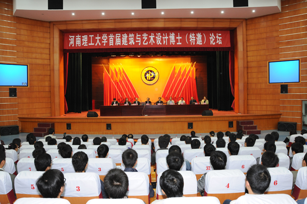 10月16日上午,我校首届建筑与艺术设计博士(特邀)论坛启动仪式在南校区音乐厅隆重举行。清华大学美术学院博士生导师、教育部工业设计教学指导委员会副主任鲁晓波教授,西北工业大学博士生导师陆长德教授,山东艺术学院刘庆孝教授,德国包豪斯大学程文婷博士,西北工业大学杜鹤民博士,兰州大学张付刚博士,焦作众盛房地产开发有限公司总工程师乔福林先生等受邀参加了会议。副校长周英,校工会主席杨建堂出席会议并与建筑与艺术设计学院全体党政领导及部分在校师生共同听取了报告。仪式由建筑与艺术设计学院院长陈兴义教授主持。