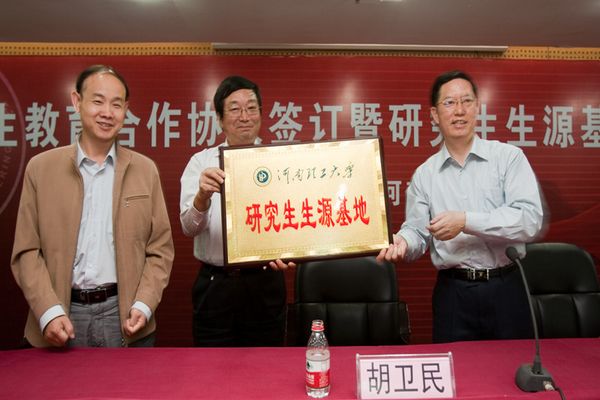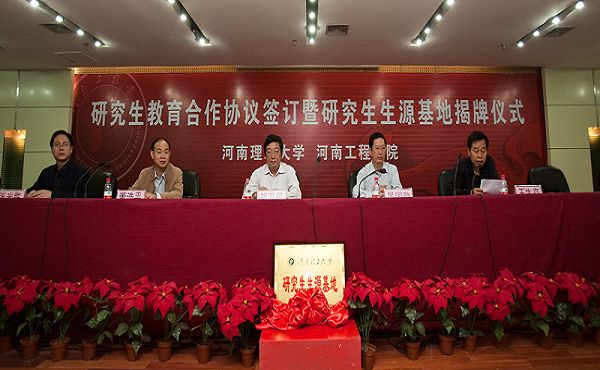 副校长景国勋和河南工程学院领导共同为研究生生源基地揭牌