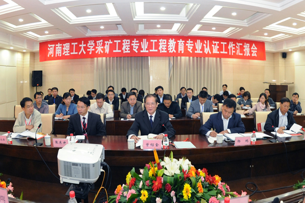 接着,邹友峰向各位与会专家介绍了学校沿革、学科建设、办学条件及师资力量等。邹友峰指出,河南理工大学是我国第一所矿业高等学府和河南省建立最早的高等学校,在一个世纪的办学历程中始终坚持教学中心地位,致力为煤炭工业发展培养人才,形成了较完备的教育教学与人才培养体系,并在特色专业、精品课程、教学团队等方面取得了一系列重大突破。邹友峰强调,开展工程教育专业论证是构建工程教育质量监控体系,增强工程教育人才培养对产业发展的适应性,促进我国工程教育国际互认的重要举措,对贯彻落实《国家中长期教育改革和发展规划纲要》,扎实推进创新实用型工程人才培养具有十分重要的意义。河南理工大学始终坚持服务煤炭工业的办学方向,重视专业建设,尤其是重视具有传统专业优势和鲜明办学特色的工程类专业的建设。特别值得一提的是,我校采矿工程专业在原焦作路矿学堂矿务学门的基础上现已成为学校重点支持建设的工程类专业,具有较高的办学条件和办学基础,为国家、社会培养了大批采矿专业人才。最后,他希望各位专家对我校采矿工程专业在现场认证考察的基础上给予指点,指导采矿工程专业进一步找准发展方向,凝炼专业特色,拓展发展思路,提升建设效果,并以此为契机,带动全校专业建设水平的提升。