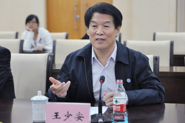 座谈会上,党委书记王少安致欢迎辞,代表校党委、行政和全体师生向考察团的到来表示热烈欢迎。接着王少安简要介绍了学校的历史沿革、办学特色,及新世纪以来学校在新校区建设、师资队伍建设、质量工程建设、科研平台建设、校园文化建设等方面取得的成就。围绕着考察团的考察内容,王少安重点就“十二五”发展规划编制工作、内部管理体制机制改革、新校区建设三个方面畅谈我校的做法和经验,与考察团进行了深入交流。