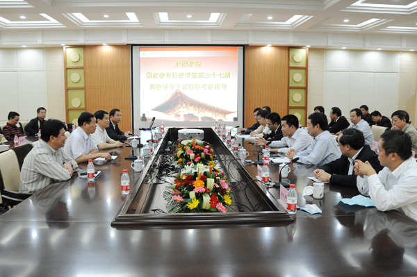 9月19日下午,国家教育行政学院第三十七期高校领导干部进修班考察团一行39人莅校考察交流,学校在南校区方形会议室举行座谈会。校党政领导王少安、张国臣、王裕清、张锟出席座谈会,党办、校办等相关部门负责同志参加座谈。座谈会由校党委副书记兼纪委书记张国臣主持。