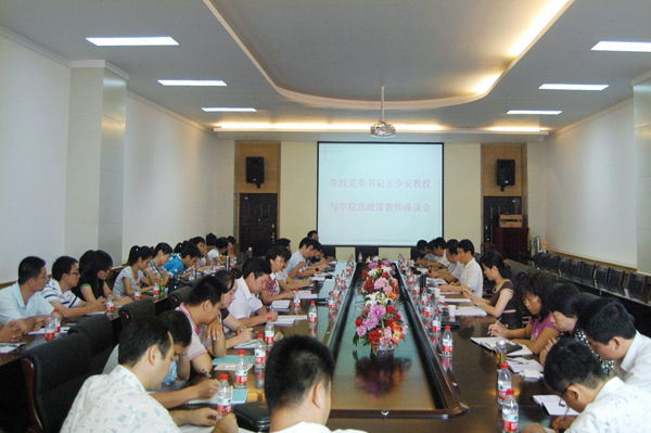 9月14日下午,校党委书记王少安到马克思主义学院与思想政治理论课全体专职教师和部分兼职教师亲切座谈。校党委办公室、宣传部和学生工作部负责同志参加座谈。