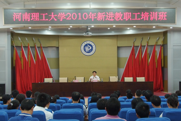 在为期三天的培训中,副校长张锟以《大学的功能与教师的责任》为题就大学的发展与功能的演进、河南理工大学的历史和现状、大学教师的责任等三个方面的问题为新进教师作了首场精彩报告;党委宣传部部长朱雪里、教务处处长赵俊伟、科技处处长张国成、人事处处长郭健卿分别以《学校历史及文化概览》、《谈谈教学》、《如何做好科研工作》、《人事政策解读》为题向新进教师介绍了学校的历史文化以及学校在教务、科研和人事管理方面的政策和体系;培训班最后由材料学院李安铭老师和文传学院文红霞老师为新进教师进行了示范教学。