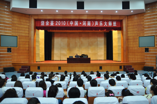 6月4日至6月6日,我国著名声乐教育家、旅意男高音歌唱家饶余鉴先生受音乐学院之邀莅临我校,在明德楼音乐厅开设“饶余鉴2010(中国•河南)声乐大师班”,并进行了为期三天的讲学。副校长周英向饶余鉴先生颁发客座教授聘书。全省各高校师生二百余人齐聚音乐厅聆听讲座,省内外近30名声乐人才参加公开课,200余人参与观摩。