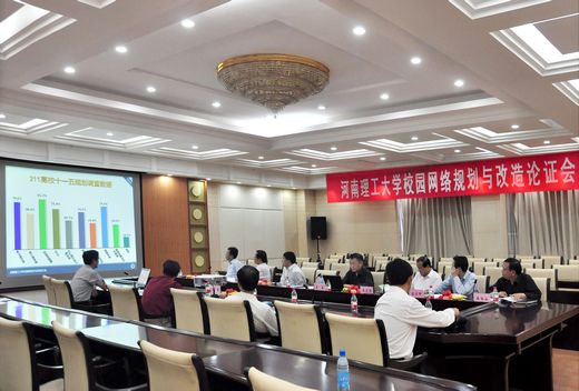 为了加强校园网络安全与管理,为广大师生提供高质量的网络使用环境,更好的服务于我校的教学、科研和管理工作,5月19日下午,在我校力行楼一楼会议室,由现代教育技术中心组织召开了“河南理工大学校园网规划与改造方案进行论证会”。 中国教育与科研计算机网(CERNET)国家网络中心副主任、博导、清华大学李星教授, CERNET华中地区网络中心主任、博导、华中科技大学李芝棠教授等7名省内外专家应邀参加论证会。 副校长周英、现代教育技术中心主任张治斌、副主任许合利以及校园网规划与改造工作相关成员参加了会议。会议由张治斌教授主持。