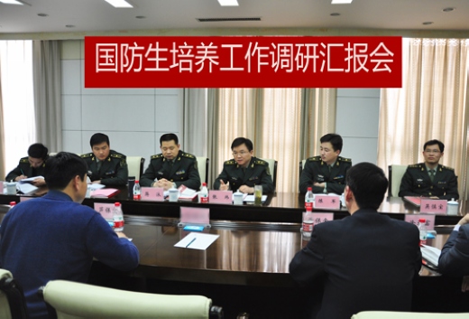 4月27日,济南军区政治部人才办副主任张炜中校一行四人在驻校选培办副主任蒋泳中校的陪同下来我校调研国防生培养工作。武装部、学生处、教务处、招生办及电气、机械、计算机等相关部门负责人参加了调研会,会议由我校武装部部长芦保宏主持。