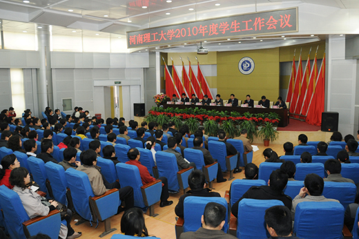 3月30日下午,我校在南校区圆形会议室隆重召开2010年度学生工作会议。会议全面总结回顾了我校2009年度学生工作,表彰了2009年度学生工作目标考核先进单位和优秀辅导员、优秀班主任,对2010年度学生工作和就业工作进行了安排部署。校领导王少安、张国臣、张战营、景国勋出席大会。相关职能部门的领导,各院(系)副书记、学工办主任、专职辅导员和兼职辅导员、班主任代表,以及学生工作部(处)、就业指导中心全体工作人员参加了会议。会议由副校长景国勋主持。