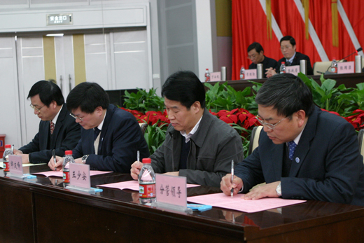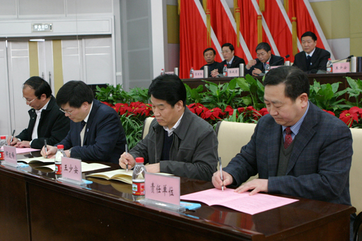 签字仪式上,校党委书记王少安、校长邹友峰和分管校领导分别与院(系)代表资环学院、外国语学院,机关职能部门代表国际处、后勤集团等单位负责人签订了2010年度工作目标责任书和党风廉政建设责任书。
