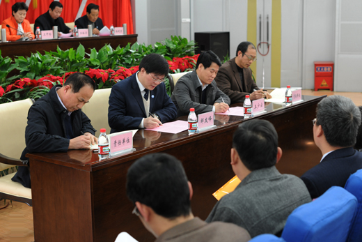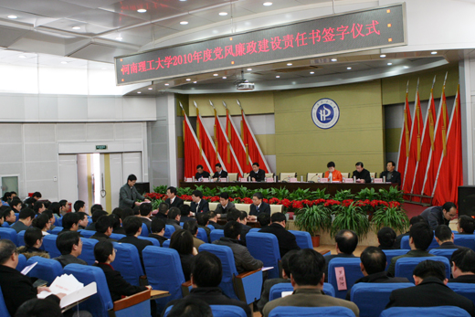 3月16日下午,学校在南校区力行楼学术报告厅举行2010年度目标责任书和党风廉政建设责任书签字仪式,校党政领导王少安、邹友峰、张国臣、卫中玲、张战营、王裕清、景国勋、杨建堂,校长助理丁安民出席会议。各单位党政负责人参加签字仪式。仪式由校党委副书记兼纪委书记张国臣主持。