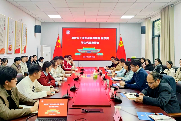 本网讯(通讯员 刘军 张元博)为进一步深入了解学生思想动态与生活状况,倾听青年心声,助力青年成长,12月19日下午,副校长丁亚红与软件学院、医学院学生党支部党员代表座谈交流。座谈会由软件学院党委书记王伟超主持,校办、学生处、医学院相关负责人陪同座谈。