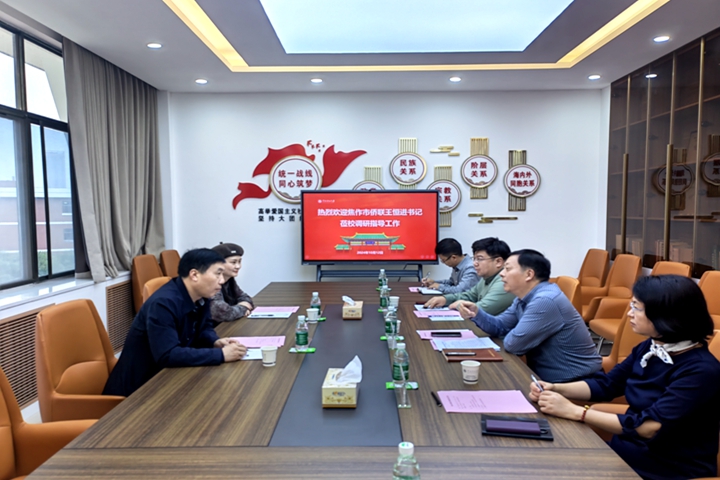 本网讯(通讯员 杨兴)10月12日,焦作市侨联党组书记、主席王恒进莅校调研侨务工作。学校在明德楼四楼统战之家召开座谈会,校侨联主席、国际处处长李新娟,校侨联副主席、音乐学院副院长赵杰等参加座谈会。座谈会由党委统战部部长杨玉海主持。