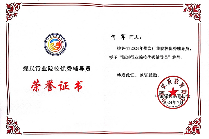 本网讯(通讯员 王晓玲 陈梦玉)近日,中国煤炭教育协会公布了2024年煤炭行业院校优秀辅导员评选结果,我校外国语学院党委副书记、辅导员何军位列其中。