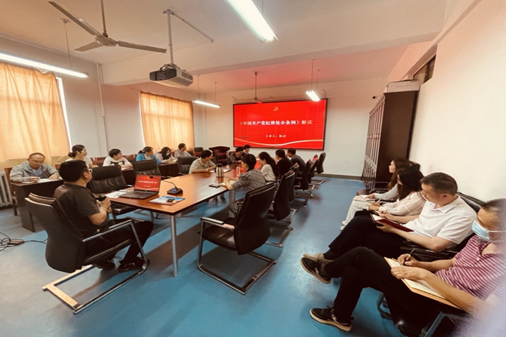 首先王景琳从“提升政治站位,深化思想认识”,全面梳理党在各个时期开展纪律教育情况,开展党纪学习教育是管党治党的必然要求,是落实全面从严治党重要抓手,教育大家深刻理解开展党纪学习教育的重要性和必要性,充分认识到开展党纪学习教育是巩固主题教育成果、推动学习贯彻党的创新理论不断走深走实的重要举措。接着从“学习党规党纪,增强纪律意识”方面,详细讲解各项纪律要求,教育大家要建立学习长效机制,不能浅尝辄止,把学习教育变成“一阵风”,要以“刀刃向内”的勇气、“刮骨疗伤”的决心,追本溯源,刨根问底,把问题摆出来“晒一晒”“治一治”,真正达到以学促改的目的。最后从“强化责任担当,提升履职能力”方面,要求大家把党风党纪教育和实际工作结合起来,进一步加强和改进机关工作作风,力戒官僚主义、形式主义和庸俗之风,把心思和精力集中到干实事上来,全心全意服务好师生;进一步加强师德师风建设,做有情怀、有水平、有温度的好老师、大先生,用自己的行为示范做好学生的引路人。